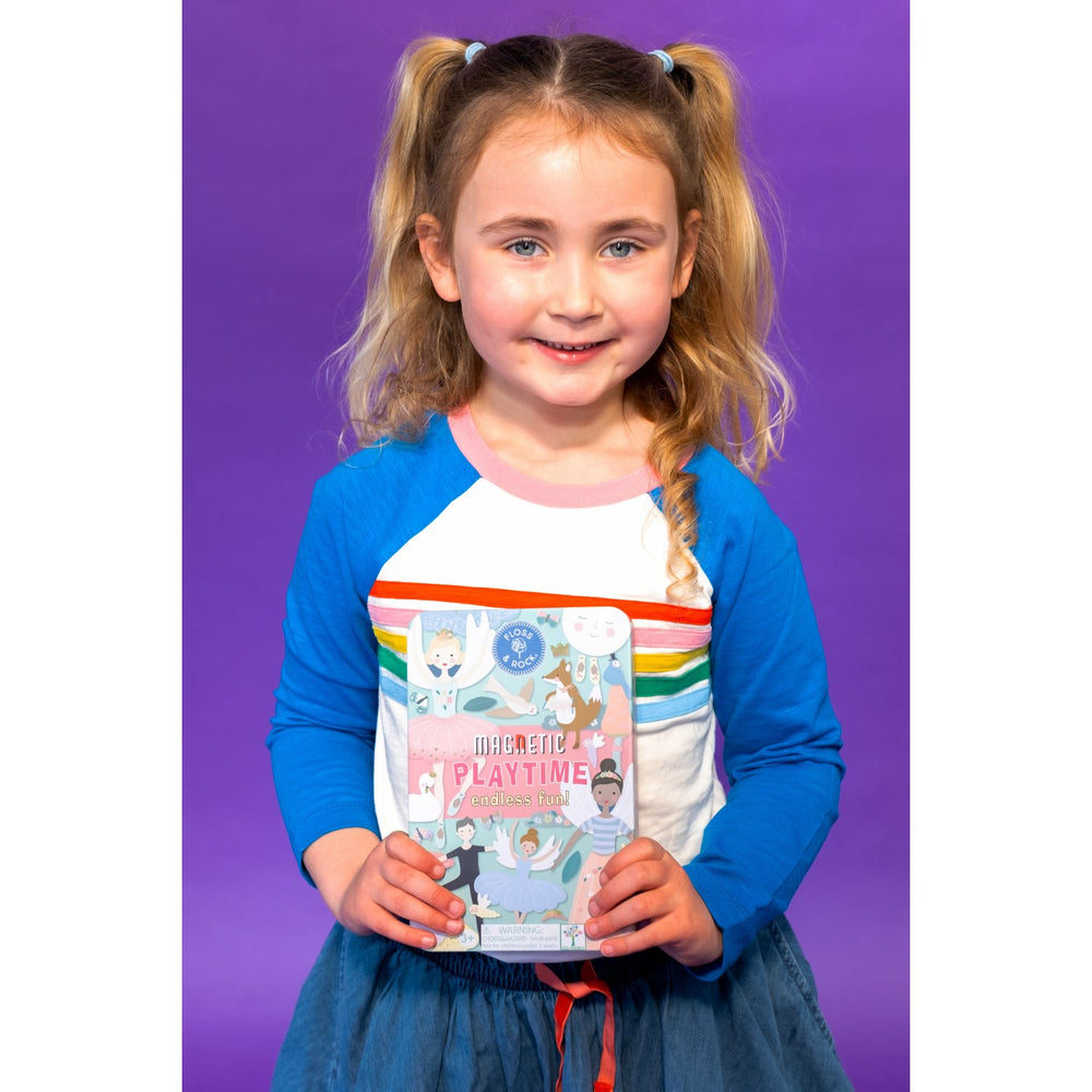 Lek i en praktisk magnetisk burk! Innehåller 3 ark med utfällbara magneter så att du kan ha kul med att fästa över 50 ljusa, roliga magnetiska bitar på de 2 roliga scenerna på insidan av din burk och låta fantasin flöda och skapa fantastiska bilder med balettdansöser, svanar, skogsvarelser och mycket mer. En perfekt present, tryckt med sojabläck och tillverkad av återvunnet material. När du har spelat klart förvarar den magnetiska burken alla dina bitar på ett säkert sätt redo för nästa gång.