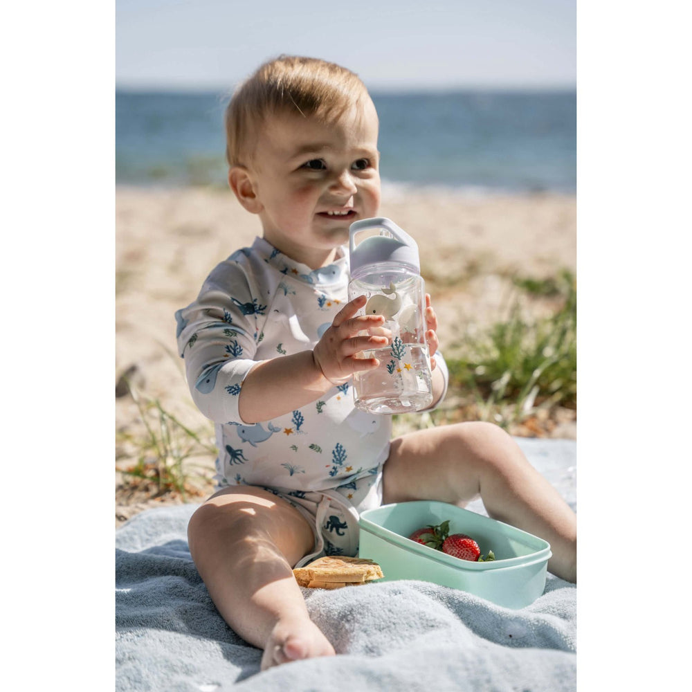 Upplev en värld av undervattensäventyr med FILIBABBA Christian's Whale Tales Dricksburk. Denna charmerande vattenflaska är tillverkad av klar, livsmedelssäker PET-plast och rymmer upp till 400 ml, vilket gör den perfekt för barns dagliga hydrering. Den transparenta designen låter ditt barn se sitt vatten vilket uppmuntrar till regelbundet drickande, medan det inbyggda sugröret i locket garanterar enkel användning även för de minsta användarna.