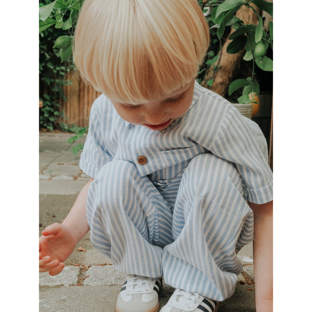 Dyk in i komforten med våra Fliink Dream Blue/Cloud Dancer Vira Pants! De här byxorna är perfekta för äventyr och lek och har en avslappnad passform och jazziga sidofickor, allt knutet ihop med ett åtsittande elastiskt midjeband. De är tillverkade av en mjuk, andningsbar linne-viskosblandning och har en lekfull randig design i drömmande sandtoner. Dessa mångsidiga byxor passar perfekt ihop med vår matchande blus eller skjorta för en komplett stilfull ensemble.