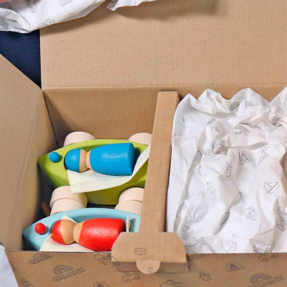 Upptäck den förtrollande världen av GRIMM'S Legetøjsbåd Little Land Yachts – perfekt anpassade för barns händer och fantasi. Dessa charmiga leksaksbilar är inte bara en fröjd för ögat med sina lekfulla design och färgglada detaljer, men de är också konstruerade med barnets säkerhet i åtanke. Tillverkade av högkvalitativt, hållbart material som är säkra och giftfria, ser de till att vara en trygg lekkamrat för ditt barn. Med deras pedagogiska värde hjälper GRIMM'S leksaksbilar till att stimulera barnens finmotorik samt främja problemlösning och kognitiva färdigheter genom lekfull interaktion. Dessa leksaksbilar är idealiska för barn från tre år och uppmuntrar till både individuellt och samarbetsspel, vilket gör dem till en suverän tillgång för varje barns utveckling. De är enkla att använda och lätta att förvara vilket gör dem perfekta för små utrymmen. Dess mobiltelefon främjar lek i många olika miljöer – ta med dem på resan eller städa upp snabbt när leken är över. Involvera ditt barn i timmar av engagerande och utbildande lek med GRIMM'S Legetøjsbåd Little Land Yachts, en investering i deras lycka och utveckling.