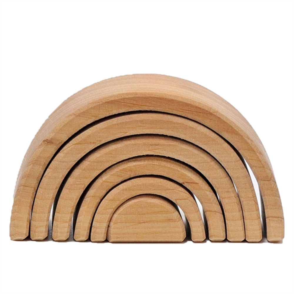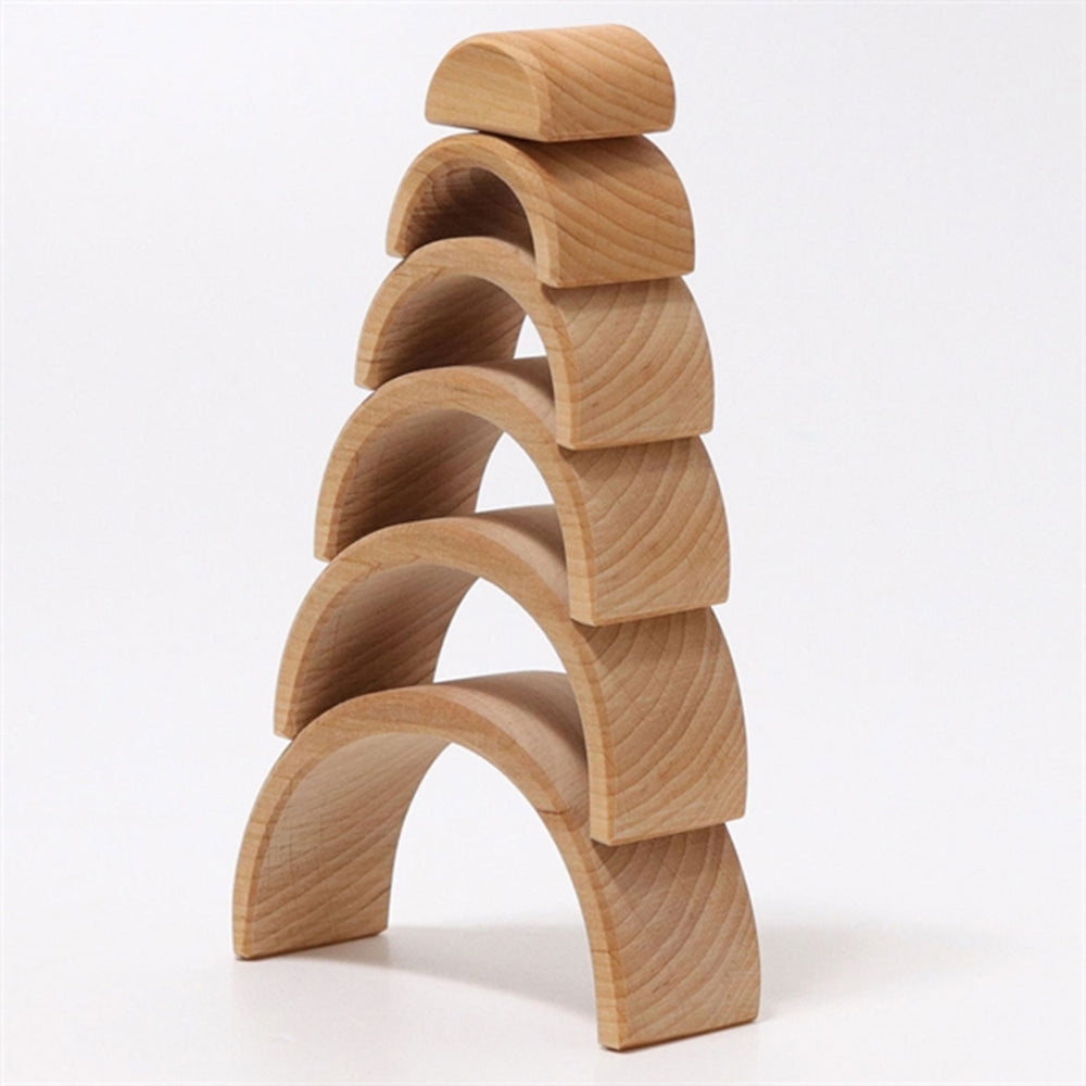 Setet är särskilt utformat för att passa små händer, vilket gör det lätt för barn att greppa, stapla och bygga med dem. Deras storlek och utformning följer barnets utveckling och är lämpliga från de första levnadsåren. Det interaktiva och engagerande sättet att leka med GRIMM's Regnbue Small Natural främjar både motoriska och kognitiva färdigheter hos barn och erbjuder oändliga möjligheter till lärande genom lek.