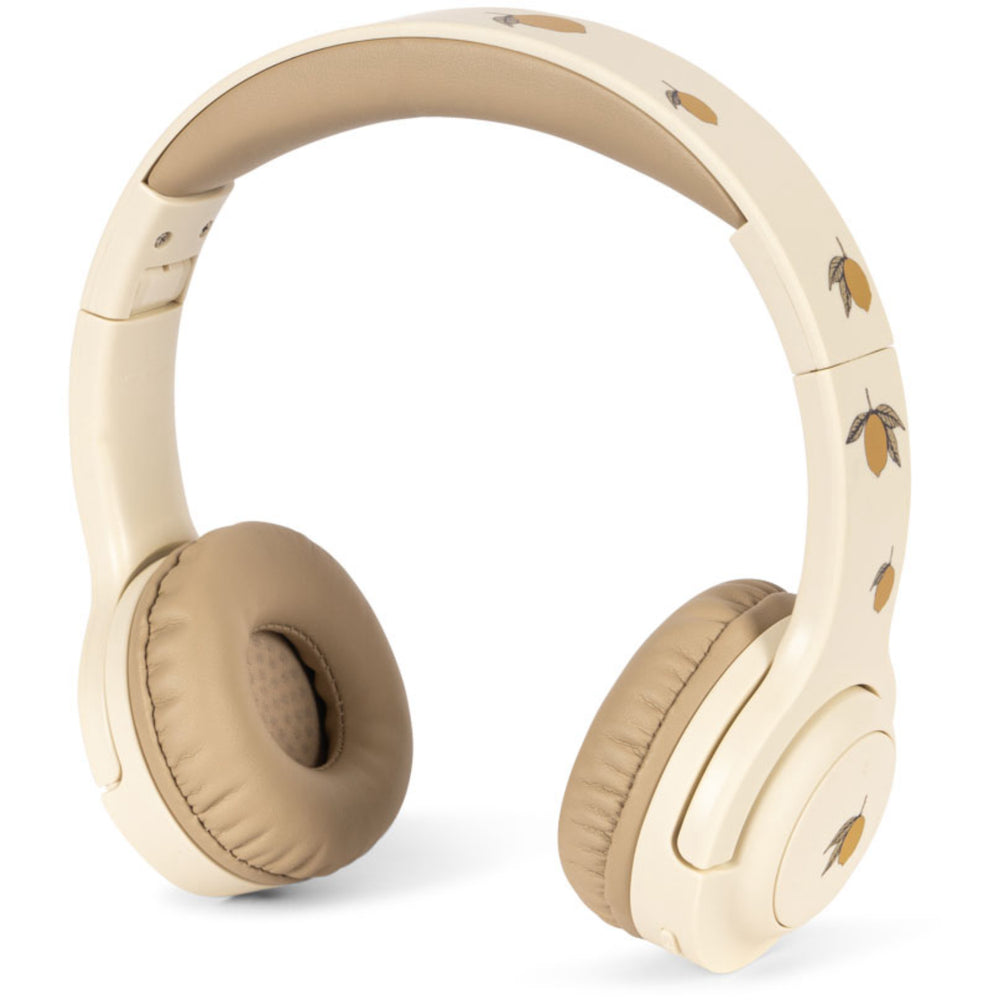 Upplev musik och ljudböcker med Konges Sløjd Lemon Hörlurar, designade speciellt för barn. Dessa trådlösa Bluetooth-hörlurar är både säkra och användarvänliga, med mjuka vadderingar som erbjuder optimal komfort. Med sitt charmiga citronmönster och robusta utförande är de perfekta för dagligt bruk. Lätta att rengöra och praktiska att förvara, dessa hörlurar stimulerar också barnets sinnen samtidigt som de håller ordning på småsakerna. Ett roligt och säkert val för alla unga musikälskare!