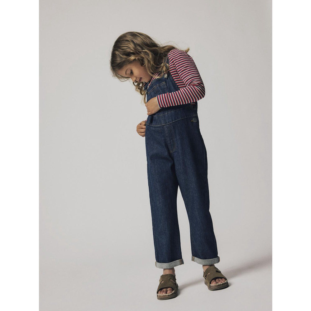Med en klassisk mörkblå färg och oblekt finish erbjuder dessa hängselbyxor en stilren design som är lätt att matcha med andra plagg. Den justerbara midjan och knappdetaljerna tillför både estetisk charm och praktisk anpassningsförmåga, medan de uppvikbara fållarna tillåter en anpassad längd och stil. Byxorna har en normal passform som säkerställer att de sitter bekvämt på ditt barn, medan hängslena håller plagget på plats.