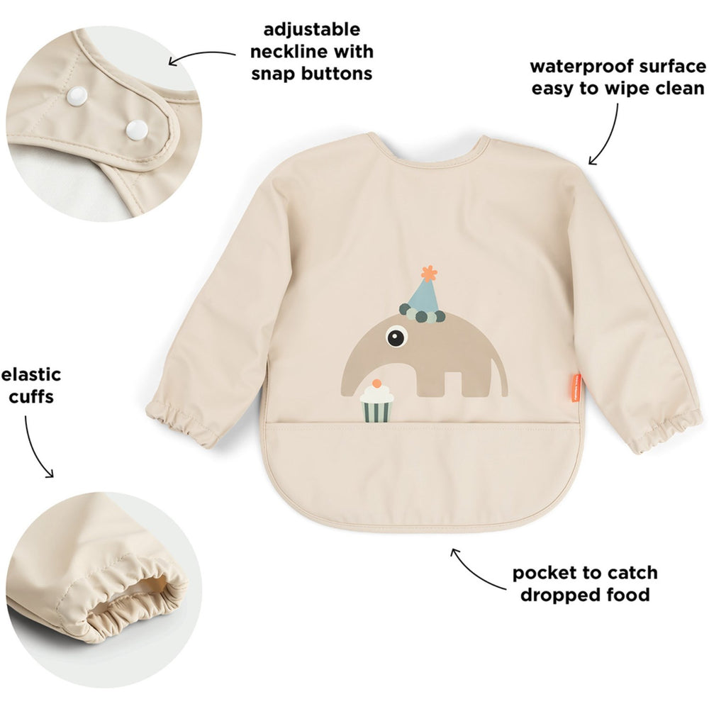 Träffa DonebyDeer Celebration Sand Haklapp Med Ärmar Og Lomme – en perfekt följeslagare för måltider med små barn! Denna intelligenta haklapp är utformad med långa, elastiska ärmar som håller barnets armar rena och torra samt en vattentät ytbehandling som enkelt skyddar kläderna och är enkel att torka av. Med den praktiska inbyggda fickan minimeras röran, eftersom nedfallna bitar samlas upp effektivt. Haklappen är även utrustad med en justerbar dubbel tryckknappsstängning som säkerställer att barnet inte kan ta av den själv. Dessutom är det en barnlek att underhålla, då den tål maskintvätt vid 30°C, vilket gör den både praktisk och hållbar för daglig användning. Multipel användning och komfort möter här elegant design och smarta funktioner för att göra måltiderna roligare och mindre kladdiga för både barn och föräldrar!