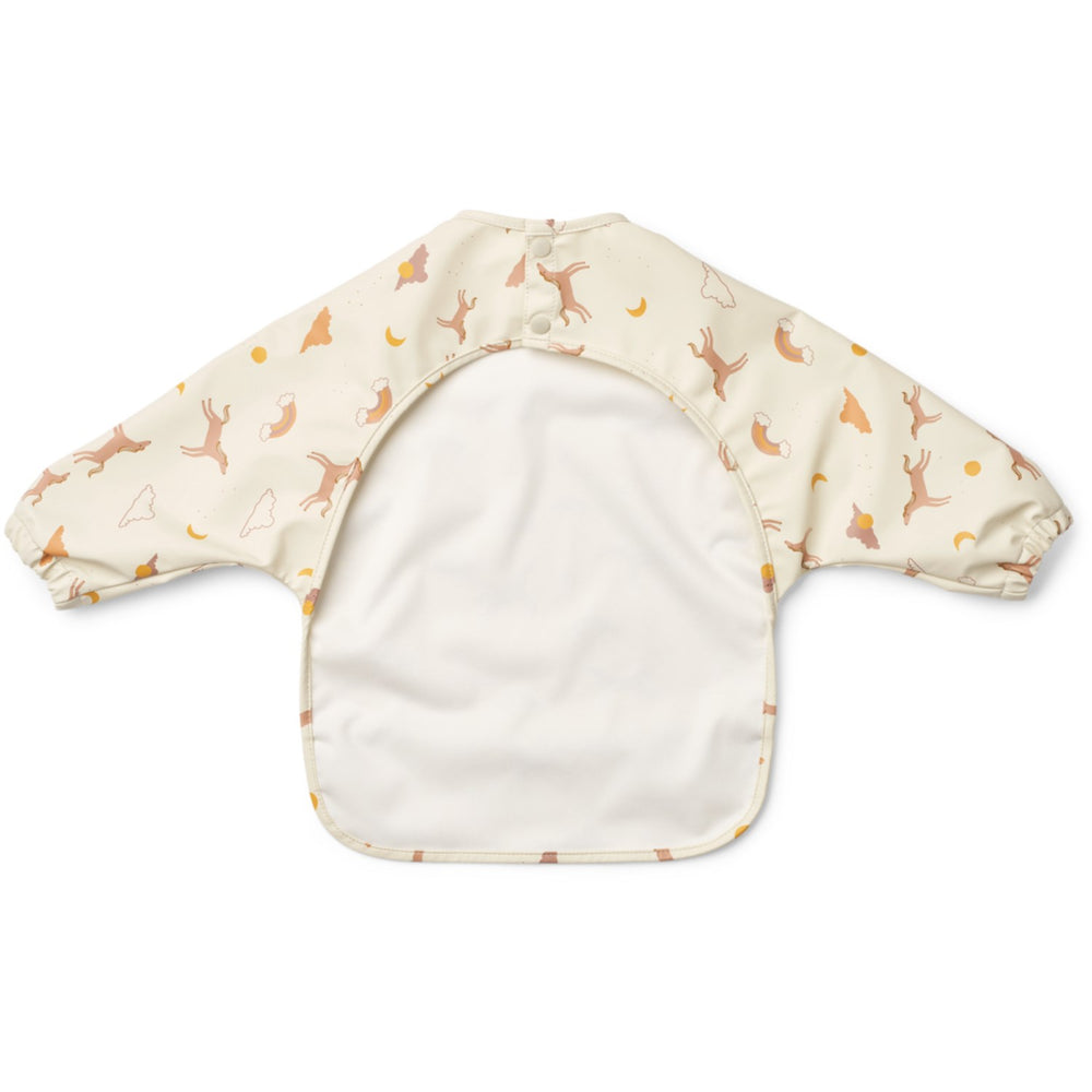 Gör måltiderna både roliga och prydliga med detta LIEWOOD Dream / Ecru Merle Printed Cape Förkläde. Detta lätta matförkläde är speciellt utformat för de små matälskarna och garanterar optimal komfort och rörelsefrihet tack vare resår vid ärmarna och den praktiska framfickan som fångar upp utspilld mat. Förklädet är tillverkat av slitstark, återvunnen polyester och är inte bara lätt att rengöra; Den är också enkel att fälla ihop och förvara, perfekt för upptagna familjer på språng. En idealisk lösning för att hålla ditt barn torrt och glatt under måltiderna.