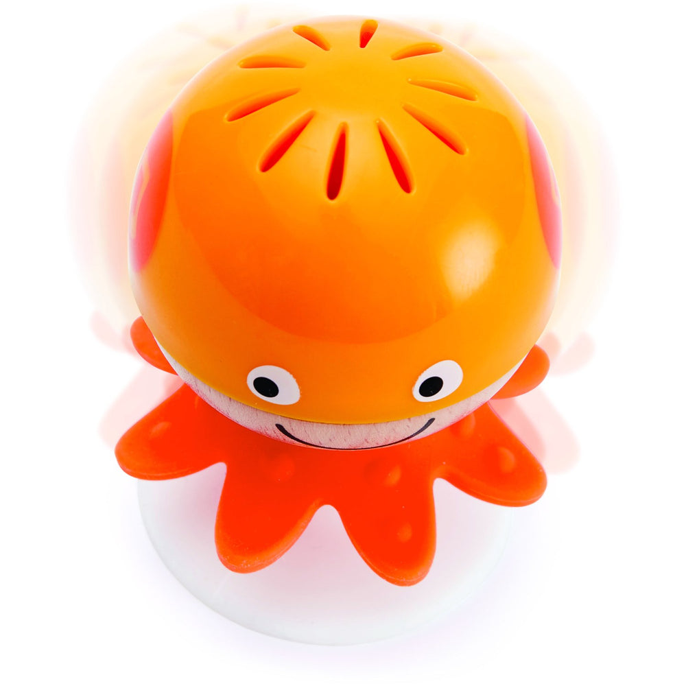 - Extra: Hape skallra set med tre olika motiv. Med den praktiska sugkoppen kan skallrorna enkelt fästas på t.ex. en toalett. Bordsskivan eller i badrummet.