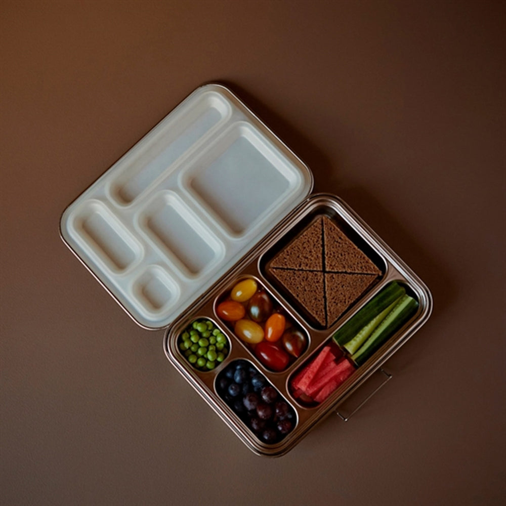 Superläcker och praktisk matlåda för barnen. Denna innehåller många olika små fack, så saker i matlådan hålls åtskilda. Matlådan hålls fast med hjälp av en silikoninsats.