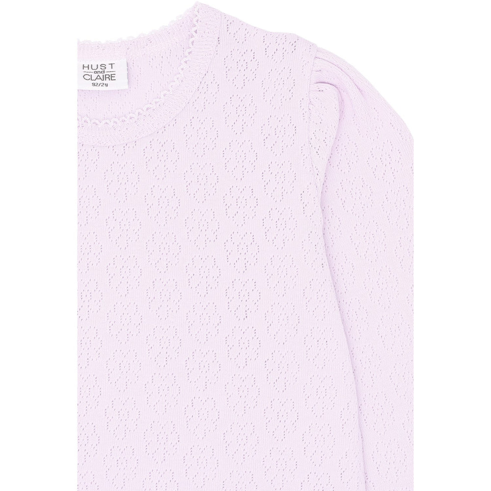 Gör din vardagsgarderob lite sötare med denna charmiga Hust & Claire Lavender Alma Blouse. Denna långärmade t-shirt är gjord av mjuk, stretchig bomull som garanterar maximal komfort och rörelsefrihet för ditt barn. Designen är inte bara praktisk utan också bedårande, med ett delikat spetsmönster i form av blommor, vilket ger en feminin touch.