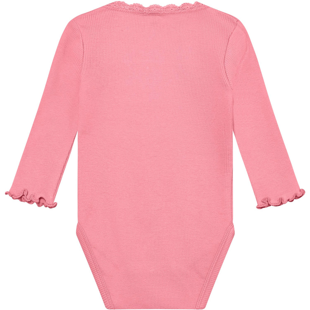 Låt din lilla prinsessa uppleva den ultimata komforten med denna Huttelihut Plumeria Body i räfflad design. Perfekt för vardagsäventyr, denna bodysuit är gjord av en härlig blandning av modal, bomull och elastan som säkerställer en mjuk och stretchig passform. Den vackra plumeriafärgen och de fina ribbade detaljerna gör den både stilren och bekväm. Ett idealiskt tillskott till ditt barns garderob, som kombinerar funktionalitet med en söt look.
