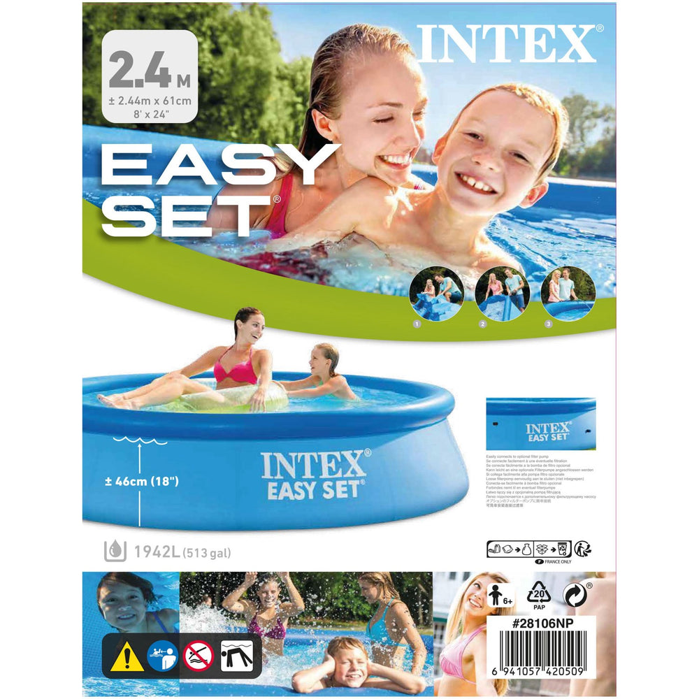 Med måtten 244 x 61 cm och en kapacitet på 1 942 liter vatten är Intex® Easy Set simbassäng tillräckligt stor för att roa flera barn, men ändå kompakt nog för att enkelt förvaras och transporteras. Dess låga underhållskrav gör det till ett bekymmersfritt tillskott till sommarens aktiviteter, så att du kan fokusera mer på att ha roligt med dina barn. Ta del av soliga dagar och skapa minnesvärda stunder med denna praktiska och roliga utomhuslek.