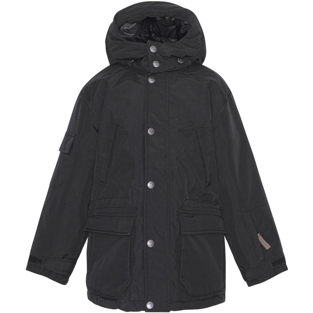 - Avtagbar huva, justerbar midja med snölås på insidan av midjan, ribbad mudd på insidan av ärmarna och skidficka på ärmen