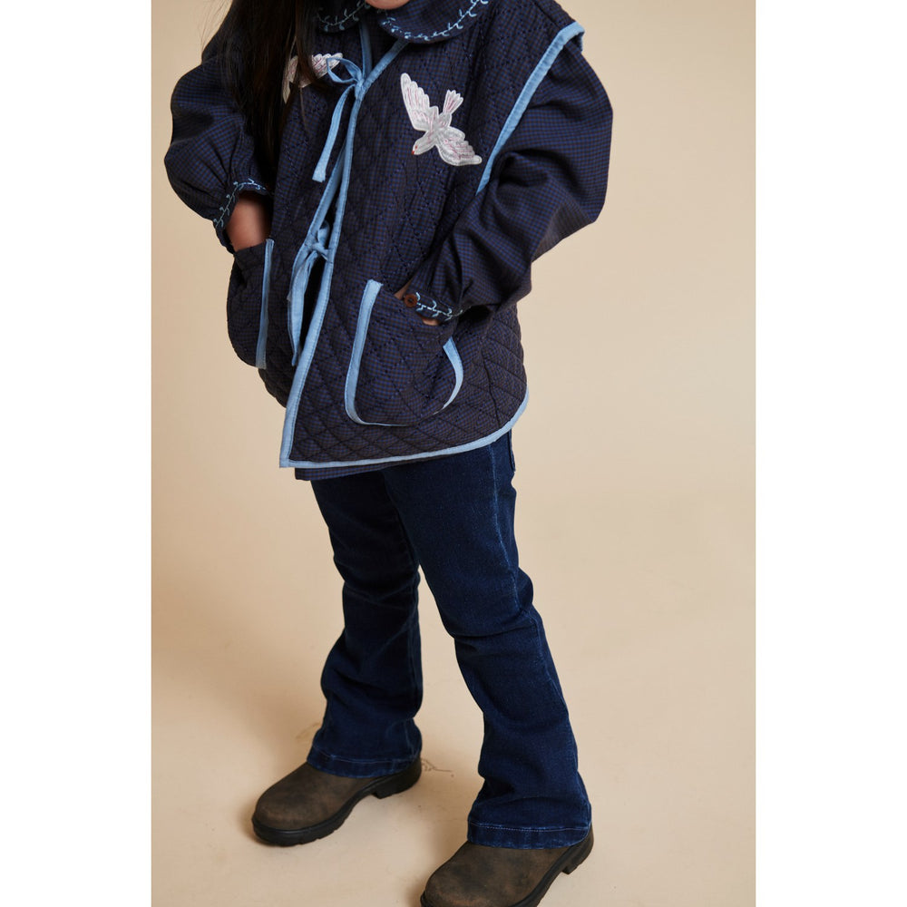 Upptäck våra stiliga och bekväma Copenhagen Colors Dark Indigo Blue Washed Jeggings. Med sin utsvängda design och elastiska midja säkrar de en optimal passform. Tillverkade av 100% ekologisk bomull, är dessa jaggingar inte bara trendiga utan också miljövänliga. De praktiska bakfickorna tillför både funktion och stil. Idealiska för lek och daglig användning, dessa jeggings förenar mode och komfort för ditt barns vardag.