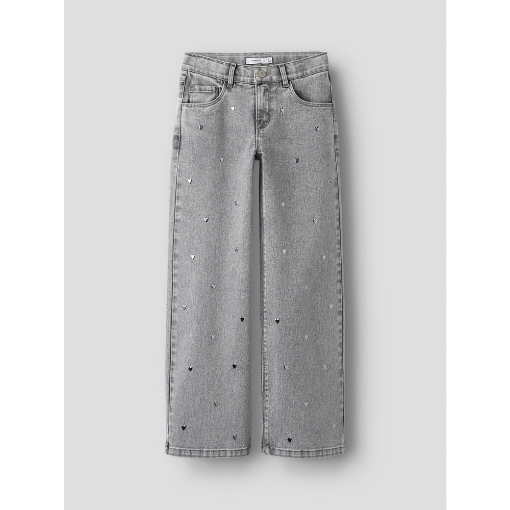Name It Light Grey Denim Heart Studs Nkfrose Wide Jeans 5503-Ya N