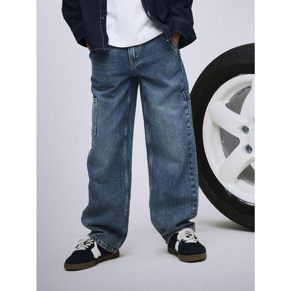 Upptäck Name It Vintage Medium Blue Denim Nkmryan Straight Carp Jeans – perfekta för ditt barns lekfulla dagar! Tillverkade av slitstark denim, dessa jeans kombinerar funktionalitet med stil. Den medelblå färgen och det raka snittet erbjuder en klassisk look som är lätt att matcha med andra plagg. Genomtänkt design med justerbar midja och flera praktiska fickor inklusive en cargoficka ger utmärkt komfort och användbarhet.