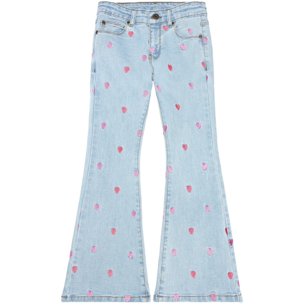 Upplev perfektion i varje söm med våra nya ljusblå denim jeans "Laflared" med vacker brodyr. Tillverkade i högkvalitativt material, dessa jeans kombinerar stil och komfort för ditt barn. Med justerbar passform och slitstarkt tyg är de idealiska för vardagligt bruk och enkla att sköta. Ge ditt barn friheten att röra sig och utforska i dessa trendiga och bekväma jeans.