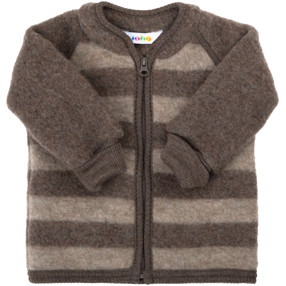 Uppdatera din lilla äventyrares garderob med vår Joha Brown Cardigan. Den här härliga koftan är tillverkad av ren merinoull och kännetecknas av sin exceptionella mjukhet tack vare en speciell borstningsprocess. Designen kombinerar eleganta släta ärmar och kanter med ett iögonfallande randigt mönster. Fulländad med praktisk dragkedja och bekväma, breda ribbade muddar, erbjuder den här Oeko-tex 100-märkta koftan både stil och komfort. Idealisk för kyliga dagar och perfekt för lekfulla aktiviteter.