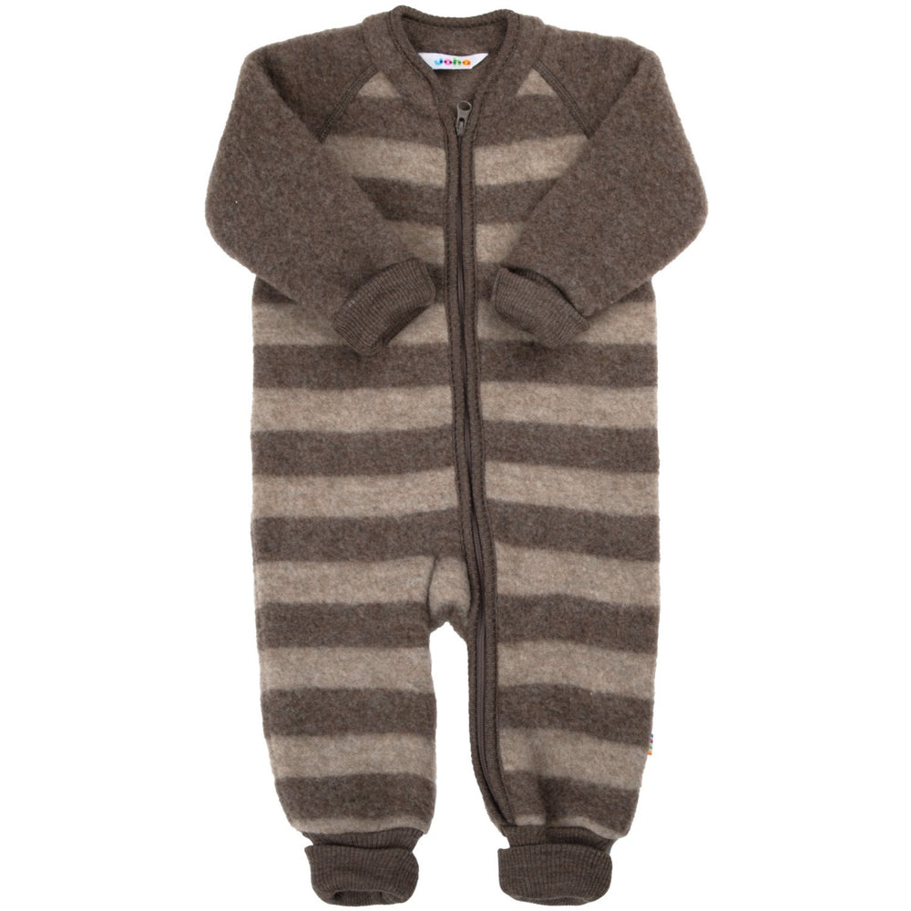 Upptäck våra bekväma och stiliga Joha Brown Onesies, perfekta för de små! Tillverkade av ren merinoull och certifierade med Oeko-tex 100, garanterar dessa onesies både kvalitet och säkerhet. Designen inkluderar en praktisk dragkedja som löper från framsidan ner genom ena benet, vilket underlättar påklädningen. Det randiga tyget kompletteras med släta ärmar och kanter, vilket ger en attraktiv look. Vår onesie är inte bara lätt och behaglig utan också idealisk för användning i bilbarnstol eller barnvagn.