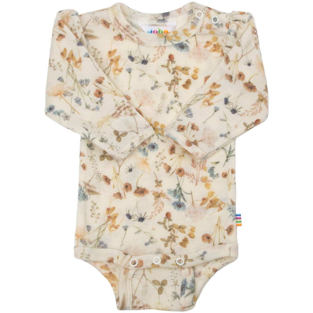 Upptäck den mysiga Joha Off White Body med långa ärmar, perfekt för ditt barns garderob. Tillverkad i ren merinoull som är både supermjuk och stretchig för optimal komfort. Den charmiga designen med digitaltryckta höstblommor gör varje plagg unikt. Praktiska snäppknappar på axeln och mellan benen underlättar påklädning. Dessutom är bodyn Oeko-Tex 100-certifierad, vilket garanterar att den är fri från skadliga ämnen. En stilren och funktionell vardagsfavorit!