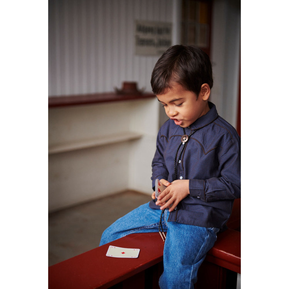 Gör er redo för en trendig dag i parken med vår "Copenhagen Colors" rutiga cowboy-skjorta! Tillverkad av 100% ekologisk bomull, garanterar denna blus optimal komfort och hållbarhet. Dess bruna och blåa rutiga design inte bara fångar ögat utan ger också en lekfull touch till ditt barns garderob. Perfekt för aktiva små, den här skjortan är lika funktionell som den är stilfull. Oavsett om det är till dagis eller ett familjekalas, kommer denna skjorta säkert att bli en favorit i alla barns klädkollektion.