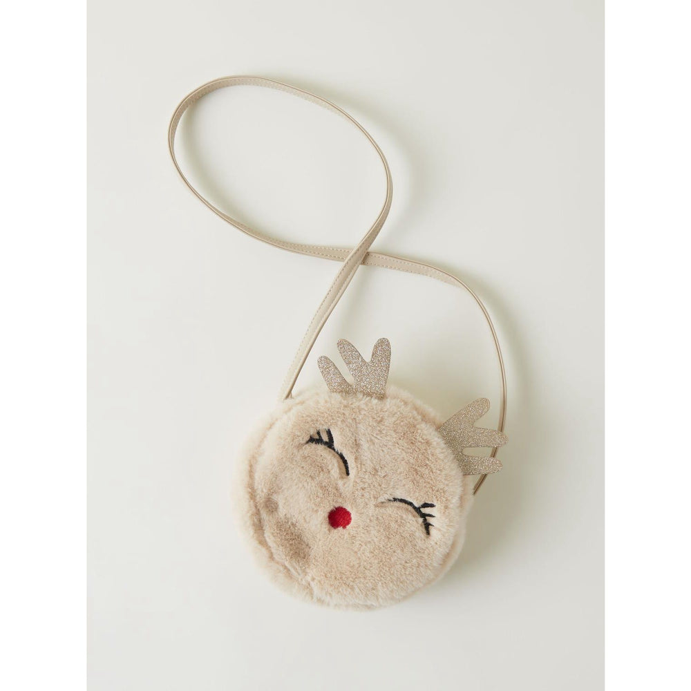 Väskan är tillverkad med en fluffig yta av fuskpäls, vilket ger en mjuk och behaglig känsla för ditt barn. Den har en praktisk dragkedja och en axelrem som gör det enkelt för barnet att öppna, stänga och bära väskan oberoende. Väskans kompakta storlek, 14 cm i höjd och bredd, gör den till den perfekta följeslagaren för ditt barns nödvändigheter.