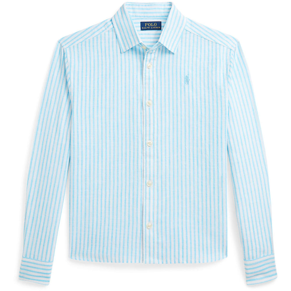 Polo Ralph Lauren Turquoise Nova/Whte Stripe Girl Knap Front Skjorta
