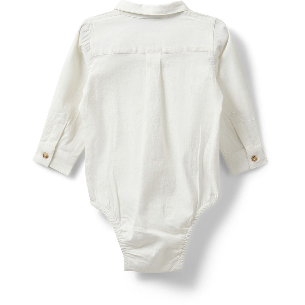 Denna härliga Sofie Schnoor kroppsstrumpa i lysande vitt är det perfekta valet för din lilla älskling. Med en elegant krage och praktiska knappar framtill kombinerar den här bodyn både stil och komfort. Den är tillverkad av mjuk bomull (98 %) och garanterar optimal komfort och rörelsefrihet för lek och nöje hela dagen. Perfekt för både festliga tillfällen och mysiga dagar hemma.