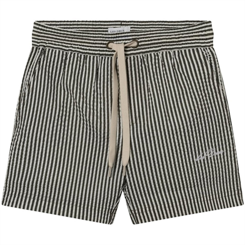 Les Deux Kids Olive Night/Ivory Stan Stripe Seersucker Badeshorts