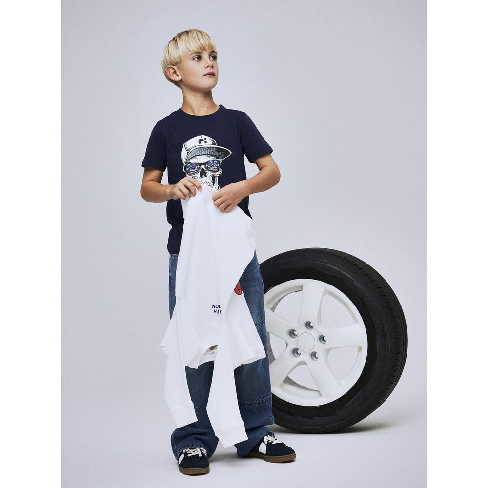 Upptäck Name It Navy Blazer Nkmlorne Ss Topp, en stilren T-shirt designad för att ge ditt barn både komfort och stil. Tillverkad i mjuk och stretchig jersey, garanterar denna topp en behaglig känsla och frihet i rörelserna, perfekt för dagens äventyr. Med korta ärmar och klassisk rund hals, fulländas utseendet av ett diskret gummitryck, vilket skapar ett trendigt men mjukt intryck. I en elegant marinblå färg, erbjuder denna T-shirt en normal passform som är både flatterande och praktisk. Idealisk för daglig användning, denna topp är lättskött och håller hög kvalitet tvätt efter tvätt, vilket gör den till ett smart val för ditt barns garderob.