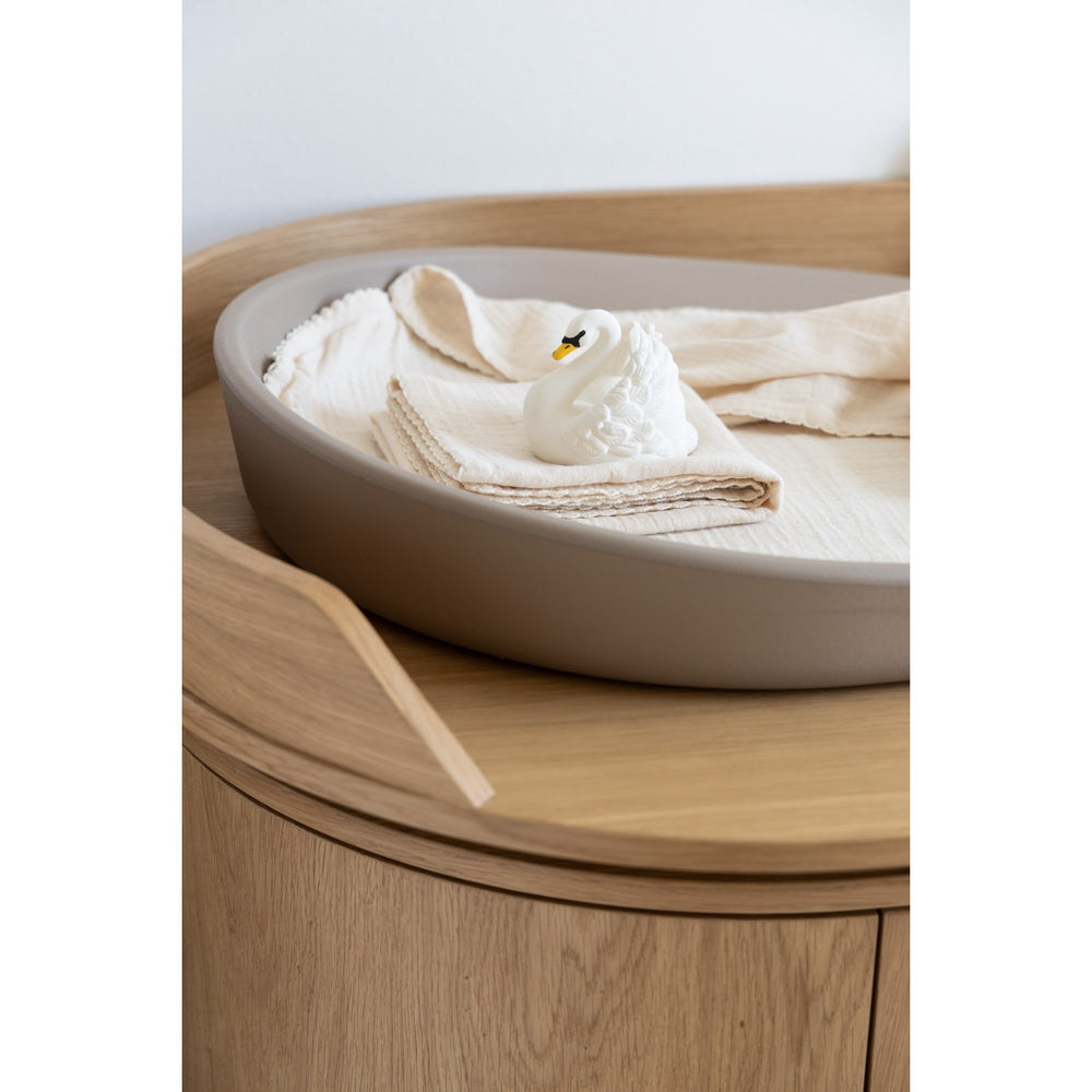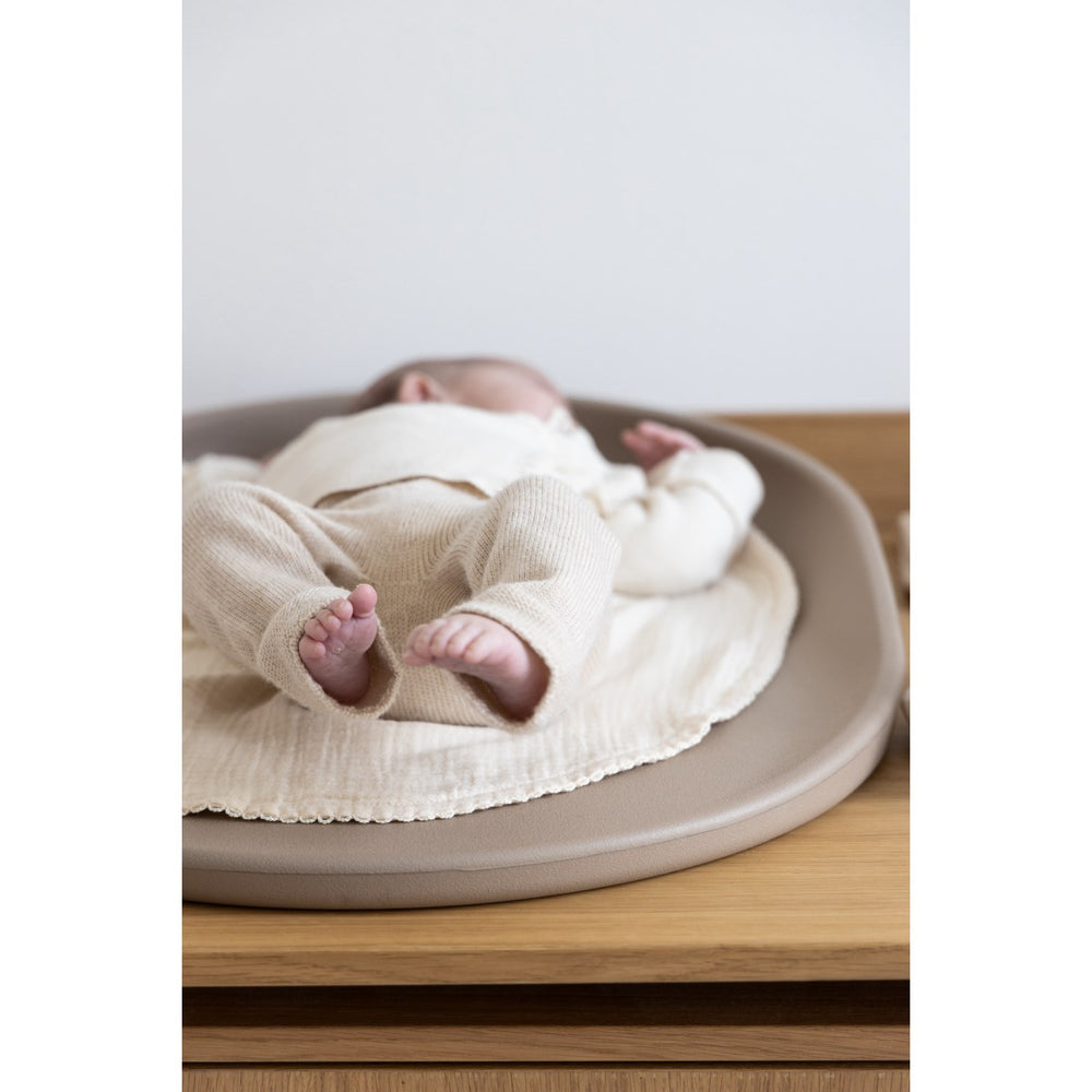 Upptäck de charmiga KAS Kopenhagen Cream Kai Pusleunderlag, perfekta för den medvetna föräldern. Dessa två ovala, vändbara skötmattor är inte bara stiliga med sin spetskant men också praktiska. Designade för att harmoniskt passa din KAI skötbädd, erbjuder de robust skydd mot små spill och olyckor.