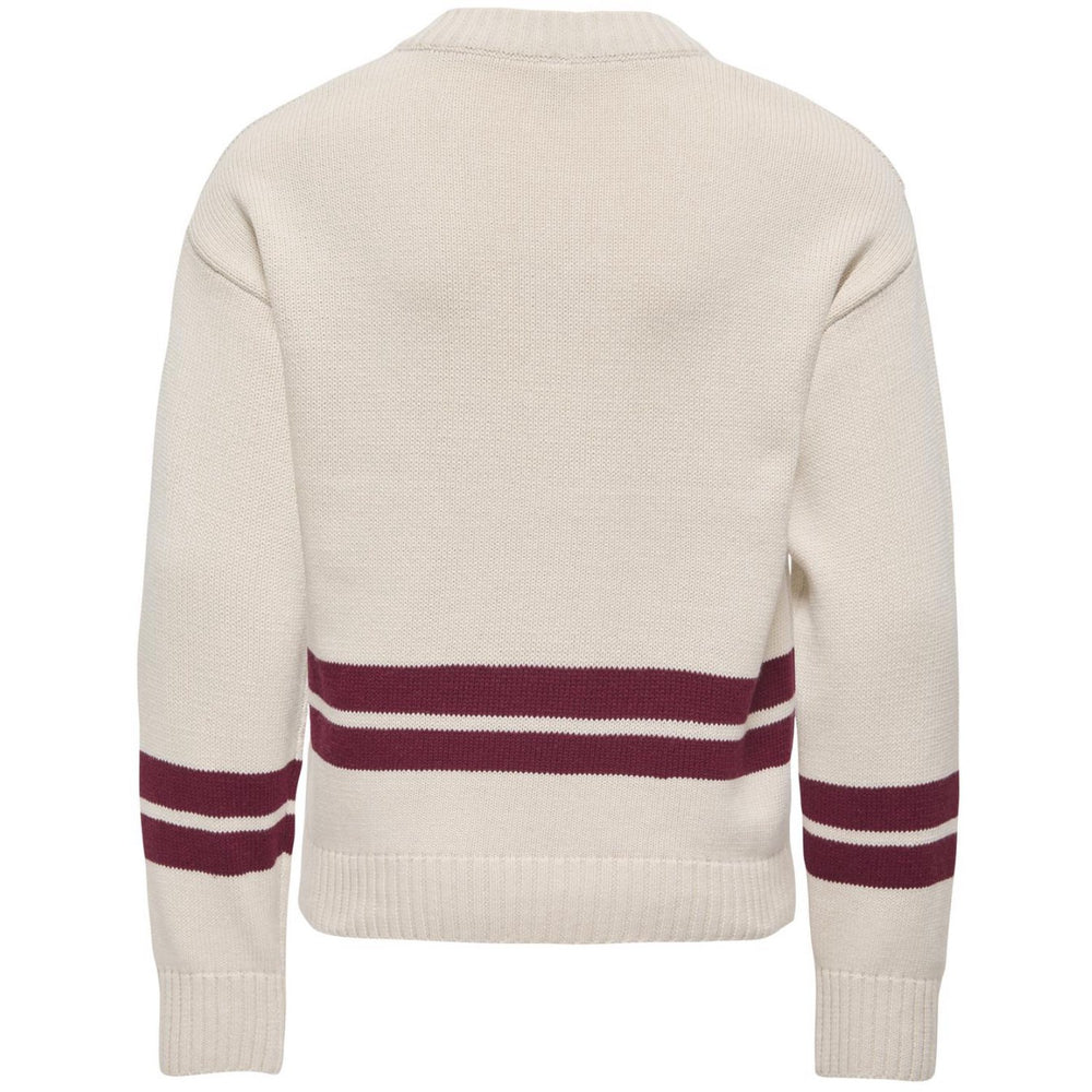 kids ONLY Birch Badge/Cabernet Kogjanny Life L/S Varsity V-Neck Knt