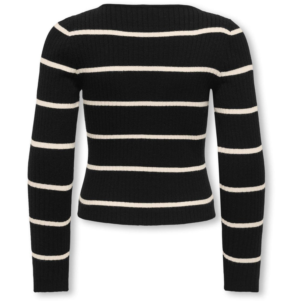 Håll ditt barn både varmt och stilsäkert med denna stickade tröja från kids ONLY. Tröjan, idealisk för alla säsonger, är designad med en elegant båthals och långa ärmar för optimal komfort. Tillverkad för juniorer i åldern 8-16 år, har den en normal passform som följer barnets rörelser. Blandningen av svart och vitgrått, i ett modernt skepparmönster gör den till en mångsidig del av varje barns garderob. Materialvalet garanterar enkel skötsel, medan den höga wearability ser till att den håller för aktiva dagar. Idealisk för daglig användning, både i skolan och under lek.
