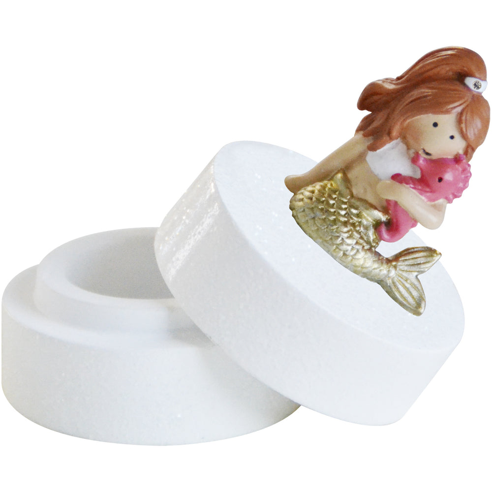 Introducera Kids by Friis Tandæske, en förtjusande tandlåda inspirerad av Den Lille Havfrue. Denna tandlåda är inte bara praktisk med sitt avtagbara lock som bidrar till enkel förvaring av små skatter, utan också estetiskt tilltalande med sitt unika havfruemotiv. Perfekt designad för att passa in i barnrummets inredning, den erbjuder en säker och ergonomisk lösning för att förvara ditt barns första tand. Dessutom är den ett stimulerande tillskott som uppmuntrar till nyfikenhet och lärande om sagornas värld.