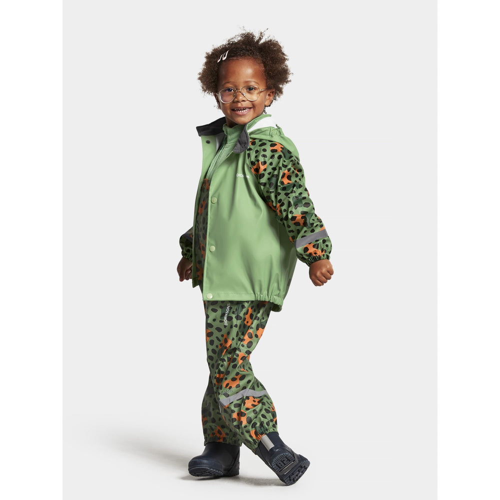 Upptäck glädjen i våta dagar med Didriksons Wild Dot Green Slaskeman – en regnklädsel designad för att hålla ditt barn torrt och bekvämt. Tillverkad av vattentätt material, erbjuder denna ensemble oöverträffat skydd mot regn och rusk. Den livliga grön färgen, dekorerad med ett lekfullt prickigt mönster, tillför stil och synlighet, vilket gör ditt barn lätt att se även under gråa, regniga dagar. Med fokus på komfort och passform, är denna regnklädsel utformad för att ge fri rörelsefrihet. Ärmsluten, huvan och nedtill kan justeras för att säkerställa en perfekt passform som växer med barnet. Materialet är inte bara tåligt, utan också lätt att sköta om; en snabb torkning är allt som behövs för att hålla setet i toppskick. Att bära Didriksons Wild Dot Green Slaskeman ger fördelar långt utöver det praktiska. Det uppmuntrar till lek och utforskning även på våta dagar, vilket är utmärkt för barns utveckling och välbefinnande. Både säkert och stilfullt, detta är det perfekta valet för att säkerställa att ditt barn får ut det mesta av varje regnig dag.