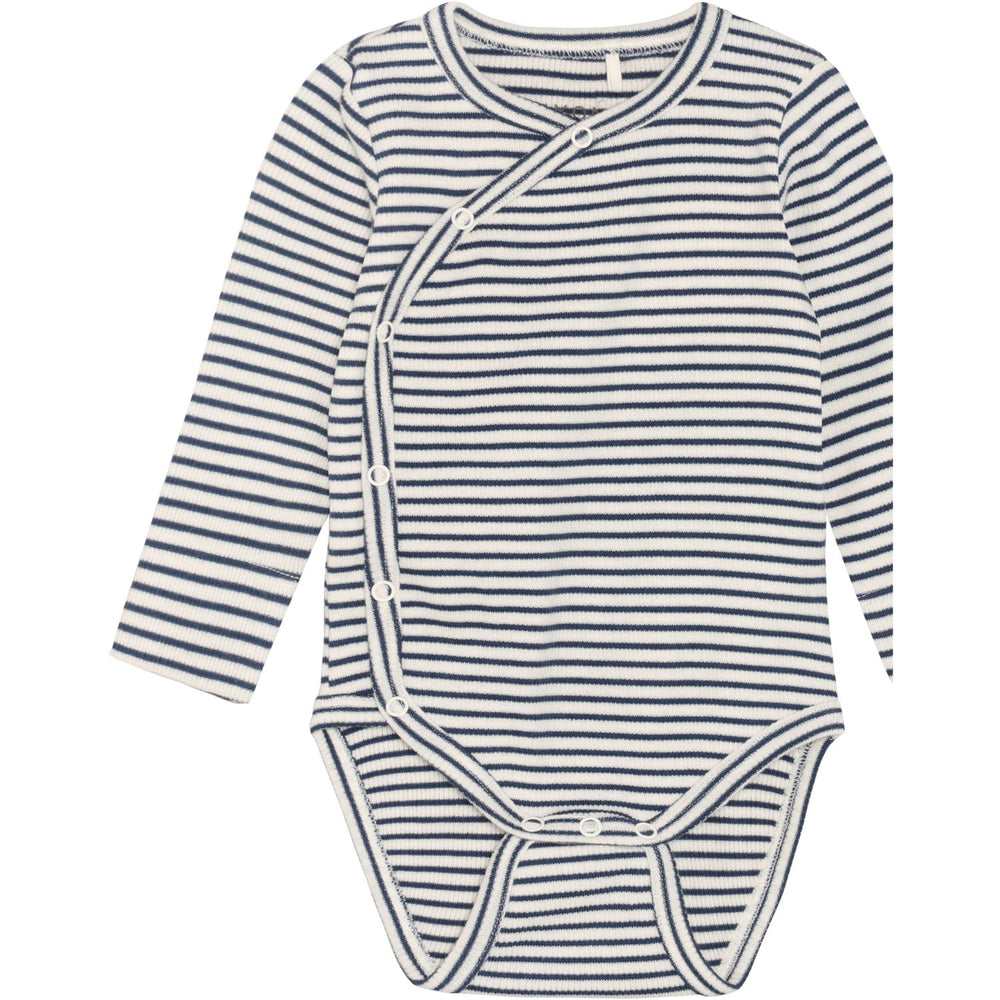 Upptäck den charmiga FIXONI Vintage Indigo Omlott Body LS Rib – perfekt för din lilla skatt. Denna bodysuit har en snygg omlott-design med praktisk tryckknappsstängning, både fram och mellan benen, som förenklar påklädningen. Tillverkad i mjuk ribbad ekologisk bomull, erbjuder den både stretch och komfort. Certifierad enligt GOTS (CERES-0366), garanterar den hög kvalitet och är skonsam mot barnets känsliga hud. Den djupa indigoblå nyansen med diskreta mönster tillför stil till vilken babygarderob som helst.