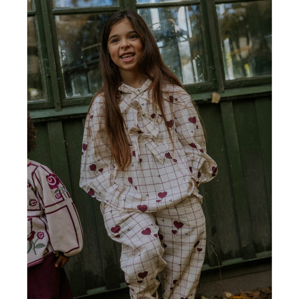Förgyll vardagen för din lilla med vår charmiga "Fliink Sandshell Heart Aop Ilove Blus". Denna långärmade blus är tillverkad i 100% mjuk bomull, perfekt för känslig barnhud. Blusens lekfulla design inkluderar ett iögonfallande rut- och hjärtballongmönster som ger en glad touch till alla tillfällen. Modellen har voluminösa ärmar med rynkor vid axlarna och bekväma resårer vid muddarna vilket kombinerar stil med rörelsefrihet. En smickrande söm i midjan kompletteras av en kjoldel som adderar skojig volym. Rundad halsringning med tygklädda knappar vid axeln underlättar på- och avklädning, samtidigt som söta rosetter framtill höjer det gulliga intrycket.
