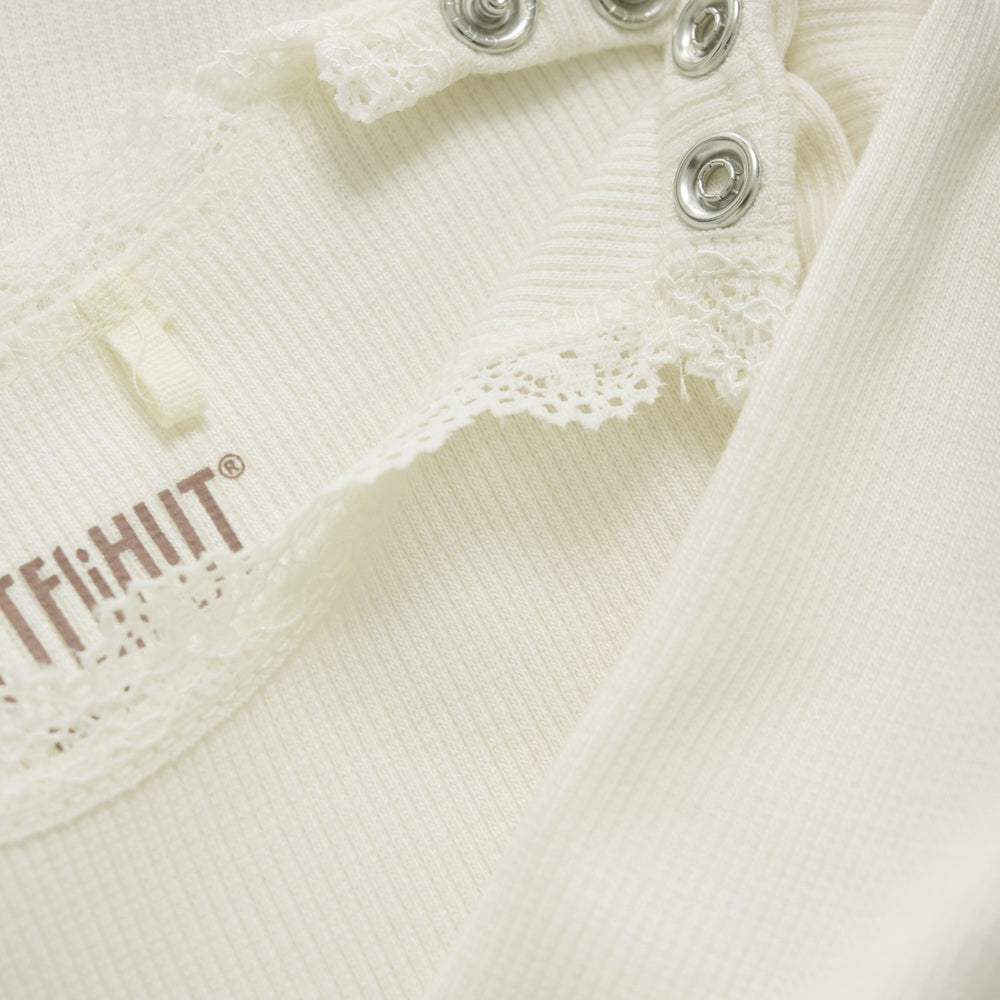 Upptäck den charmiga Huttelihut Body LS Rib, en oemotståndlig kombination av stil och komfort för ditt barn. Tillverkad i mjuk ribbad textil, erbjuder denna body en optimal passform och mjukhet som omfamnar din lilla. I en elegant antikvit färg med lätt matchning till andra plagg i garderoben blir det ett stilfullt val för alla tillfällen. Bodyns snitt och flexibilitet garanterar bekvämlighet under lek, medan den enkla skötseln försäkrar att denna piece återgår till ny skick tvätt efter tvätt. Klä din pärla i Huttelihut för en kombination av mode och funktionalitet.