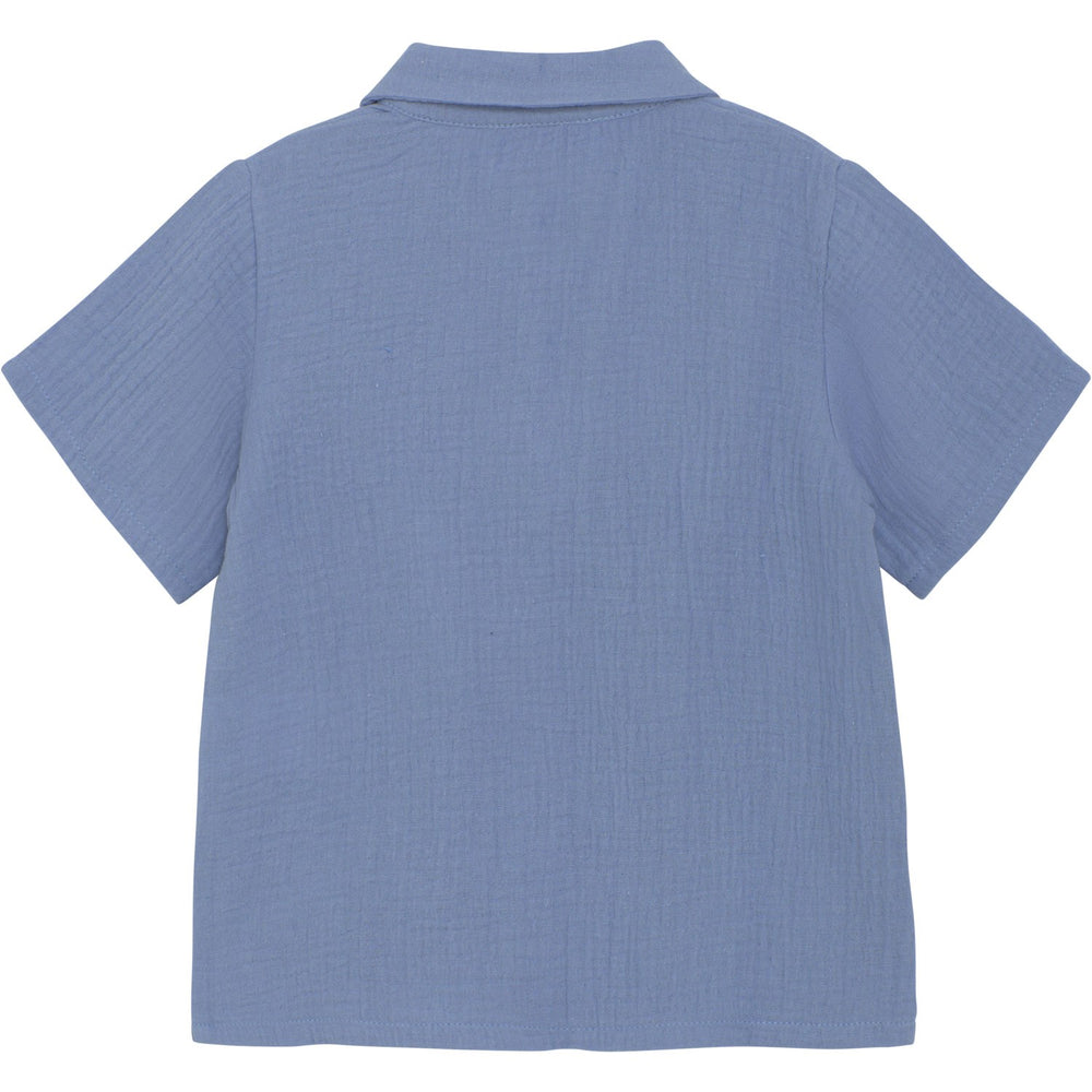 Skjortan kommer i en lugnande "Quiet Harbor" färg, en mjuk nyans som enkelt kombineras med andra plagg i barnets garderob. Storlekarna är anpassade för att passa barn i olika åldrar, och det generösa snittet säkerställer att de kan röra sig fritt och bekvämt. Tack vare det hållbara muslinmaterialet står denna skjorta emot slitage som kommer av frekvent användning och tvätt.
