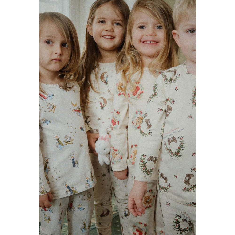 Upptäck det charmiga nattsetet från Konges Sløjd, perfekt för barnens sömnrutiner. Tillverkad av mjuk GOTS-certifierad ekologisk bomullsjersey, erbjuder detta set en matchande överdel och underdel med klassisk slim fit och stretch för ultimat komfort. De små storlekarna (9M-18M) har praktiska tryckknappar på vänster axel för enkel påklädning. Designen kombinerar funktionalitet med en stilren estetik, vilket gör det till ett utmärkt val för både vila och lek.