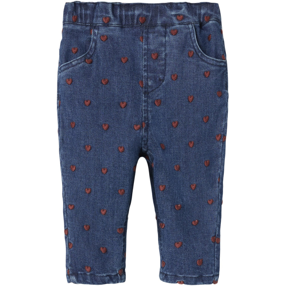 Lil'Atelier Dark Blue Denim Heart Embroidery Liva Loose Jeans