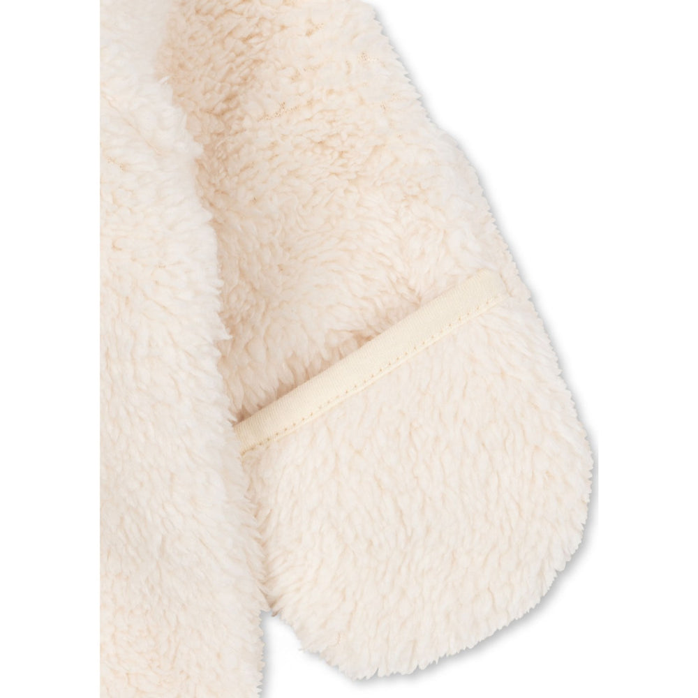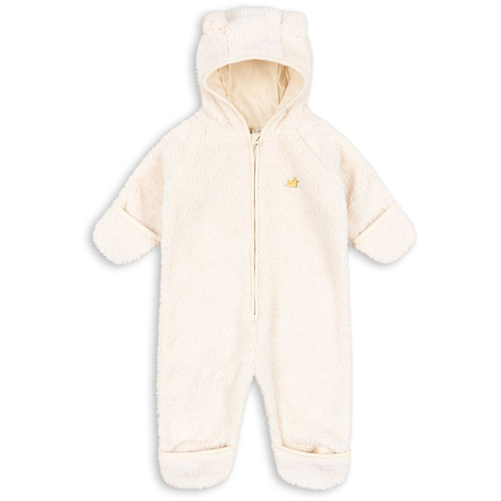 Håll din lilla fin och varm och gosig med denna Konges Sløjd Picco onesie i antikvitt. Denna charmiga sovdräkt är gjord av mjukt och bekvämt material, designat för att ge maximal komfort och värme. Den hela dragkedjan framtill gör den enkel att ta på och av, medan de söta björnöronen på huvan ger en rolig twist. Perfekt för en tupplur eller en avkopplande dag hemma. De vikbara muddarna på händer och fötter ser till att ditt barn kan växa med dräkten, vilket ger extra värme under kallare dagar.
