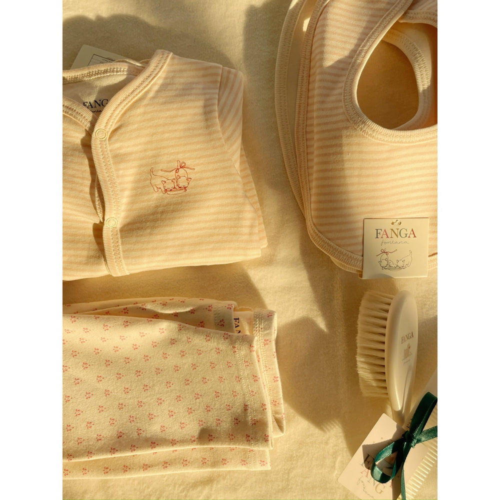 Gör din lilla älskling redo för kyliga dagar med Konges Sløjd Blush Mix Fio Stripe 2-pack mössor. Dessa charmiga mössor är gjorda av ekologisk bomull och har ett sött, klassiskt randmönster. Med den praktiska vikbara kanten kan du anpassa mössan perfekt till ditt barns huvud, och den elastiska ribbade kvaliteten ser till att mössan sitter stadigt på plats, oavsett lekaktivitet. Perfekt för både promenader och lek i sandlådan!