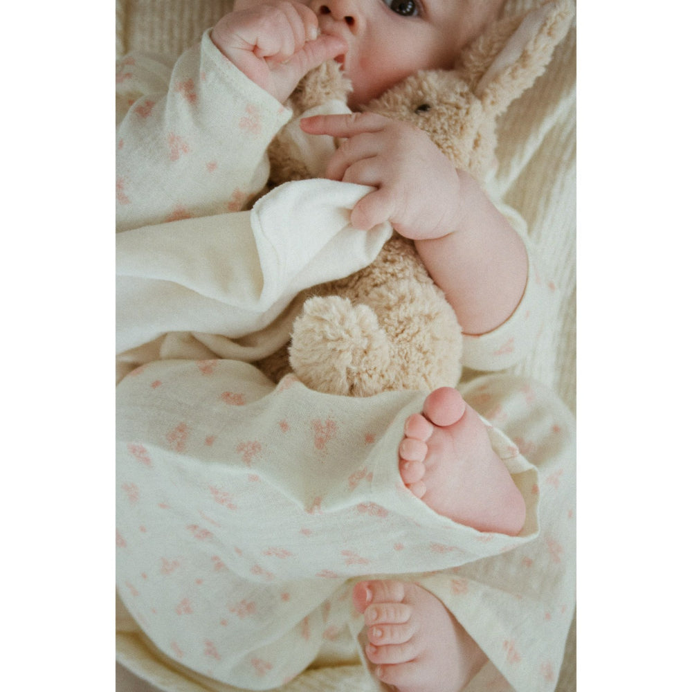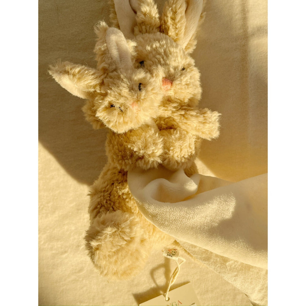 Den här härliga Piccobino kelduken från Konges Sløjd är perfekt för de små händerna. Med sin mjuka, grå design i form av en kaninmamma och en kaninunge kommer den snabbt att bli ditt barns nya bästa vän. Perfekt för komfort och lek, denna gosiga trasa kommer att se till att ditt barn känner sig tryggt och älskat, vart äventyret än tar dem. Skapad i mjuka material och med sin lugna färg är den perfekt för både kramstunder och för att lugna innan läggdags.