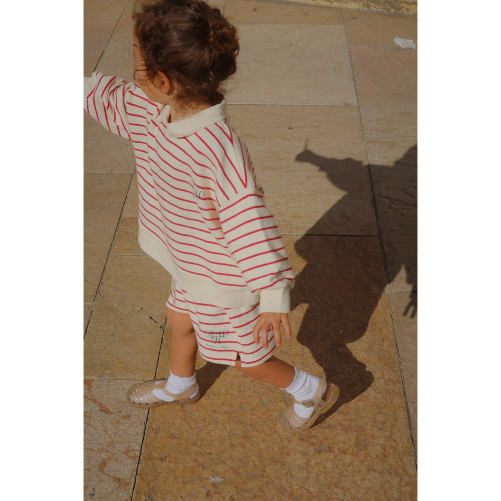 Upplev komforten med våra Konges Sløjd Porta Tripe RHW X KS Largo Shorts, perfekt för ditt barns garderob. Tillverkade i 100% ekologisk bomullstrikå, dessa mjukisshorts är både mjuka och hudvänliga, certifierade enligt GOTS (CU1094701). Med sin klassiska och avslappnade passform, tidlösa ränder, och justerbar dragsko i midjan, erbjuder de optimal komfort och rörelsefrihet. De sidslitsar som finns tillför extra stil och funktionalitet till dessa mångsidiga shorts. Idealiska för allt från lek i parken till avkoppling hemma.