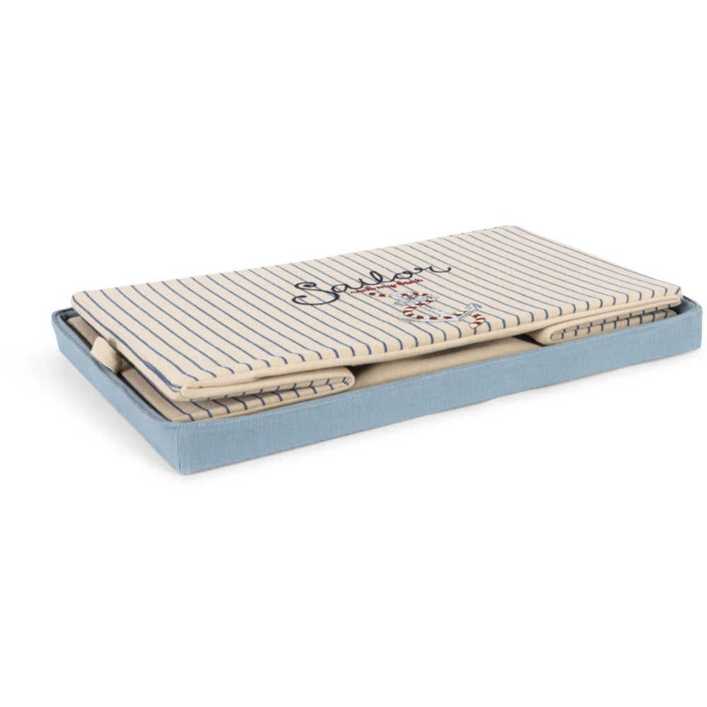 Upptäck Konges Sløjd Sailor Förvaring Korg Small – den perfekta lösningen för att hålla ordning i barnrummet! Denna charmiga lilla korg är tillverkad av 100% bomull och erbjuder en praktisk och estetiskt tilltalande förvaringsmöjlighet. Med sina mått på 38 x 21 x 23 cm är den idealisk för att eleganta stuva undan allt från leksaker till små barnprylar. Dess lättviktsmaterial gör den enkel att fälla ihop och förvara, vilket maximerar rummets användbarhet utan att offra stil. Den stilrena designen kompletterar varje barnrum och bidrar till en ordnad och stimulerande miljö där ditt barn kan växa och utforska.