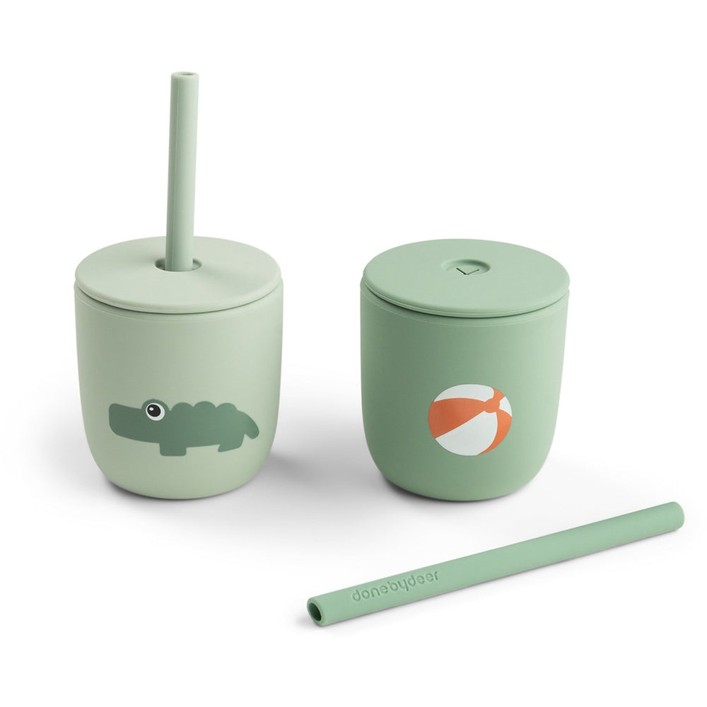 DonebyDeer Playground Green Silikon Sugerørskop 2-Pack