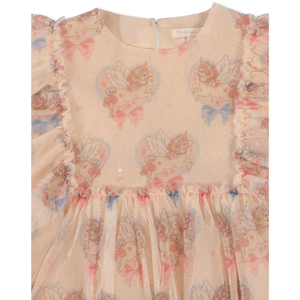 Förtrolla omgivningen i Konges Sløjd Twinkle Sprinkle Ada Fairy klänning, perfekt för lekfulla äventyr och festliga tillfällen. Klänningen är designad med flera lager dekorativ tyll och en charmigt voluminös kjol som dansar vid varje steg. Tillverkad av 100 % återvunnen GRS-certifierad polyester (CU 1094701) för att värna om miljön, med ett mjukt bomullsfoder för optimal komfort. Hållbar och enkel att sköta, denna klänning lovar både stil och funktionalitet för ditt barns garderob.