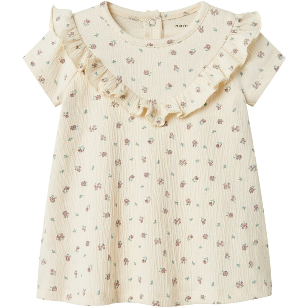 Upptäck den charmiga "Name It Bleached Sand Jannis Body Klänning," perfekt för att din lilla ska kunna utforska världen med stil och komfort. Denna klänning är tillverkad i mjuk och stretchig jersey, som är skonsam mot barnets hud och erbjuder utmärkt rörelsefrihet. Den snygga designen med en runt skuren hals och korta ärmar kombinerat med en praktisk tryckknappstängning gör klädnaden enkel att ta på och av. Det subtila, upprepande mönstret adderar en lekfull touch samtidigt som den blekta sandfärgen ger en mjuk och neutral bas som är lätt att matcha med andra plagg. Klänningen har en normal passform som säkerställer att ditt barn kan röra sig fritt utan att känna sig instängd. Detaljer som den utskurna dekorationen förhöjer dess unika karaktär. Möjligheten att enkelt kombinera denna kläning med andra plagg gör den till en mångsidig del av barnets garderob. Den är inte bara stilren, utan också designad att hålla hög komfort hela dagen. Säkerhetsvarningen om att förvaras åtskilt från eld betonar produktens säkerhetsaspekter. Den här klänningen representerar en blandning av funktion, mode och hållbarhet, perfekt för både vardagliga äventyr och speciella tillfällen.