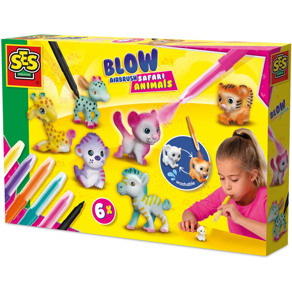 Med de medföljande fem specialdesignade blåsmarkörerna i livliga färger som turkos, gult, orange, lila och rosa kan ditt barn skapa fantastiska airbrush-effekter och lära sig om färgövergångar. En svart penna är också inkluderad för att lägga till fina detaljer och framhäva figurernas charm. Djuren och pennorna är framställda av säkra material såsom PP, PET och EVA-skum – en garanti för både säker användning och hållbarhet.