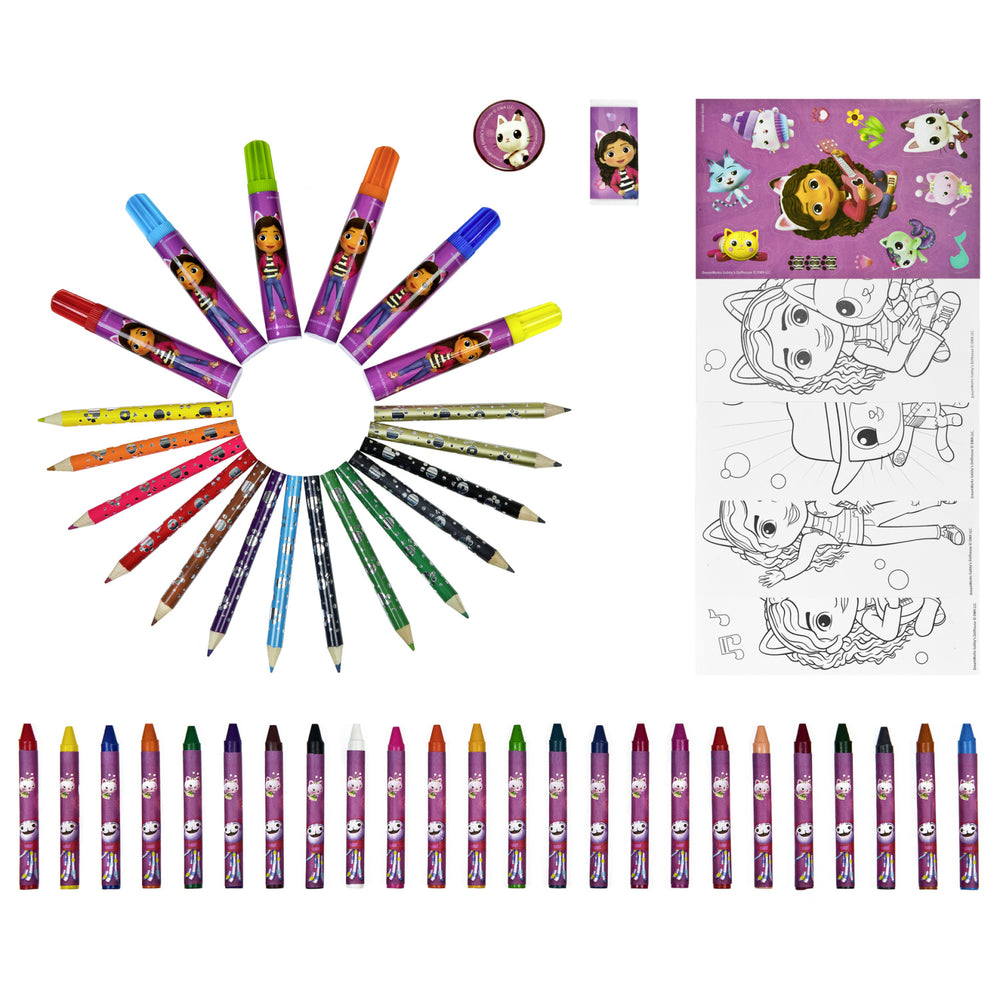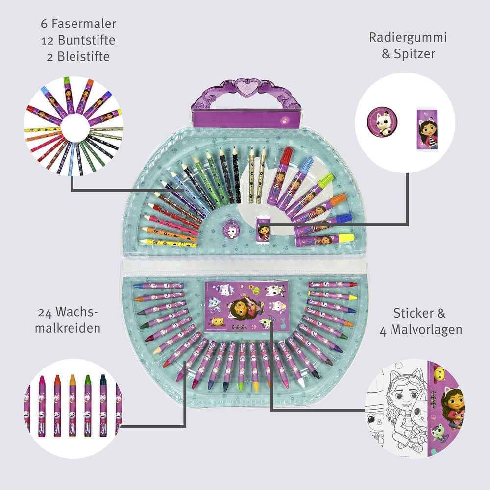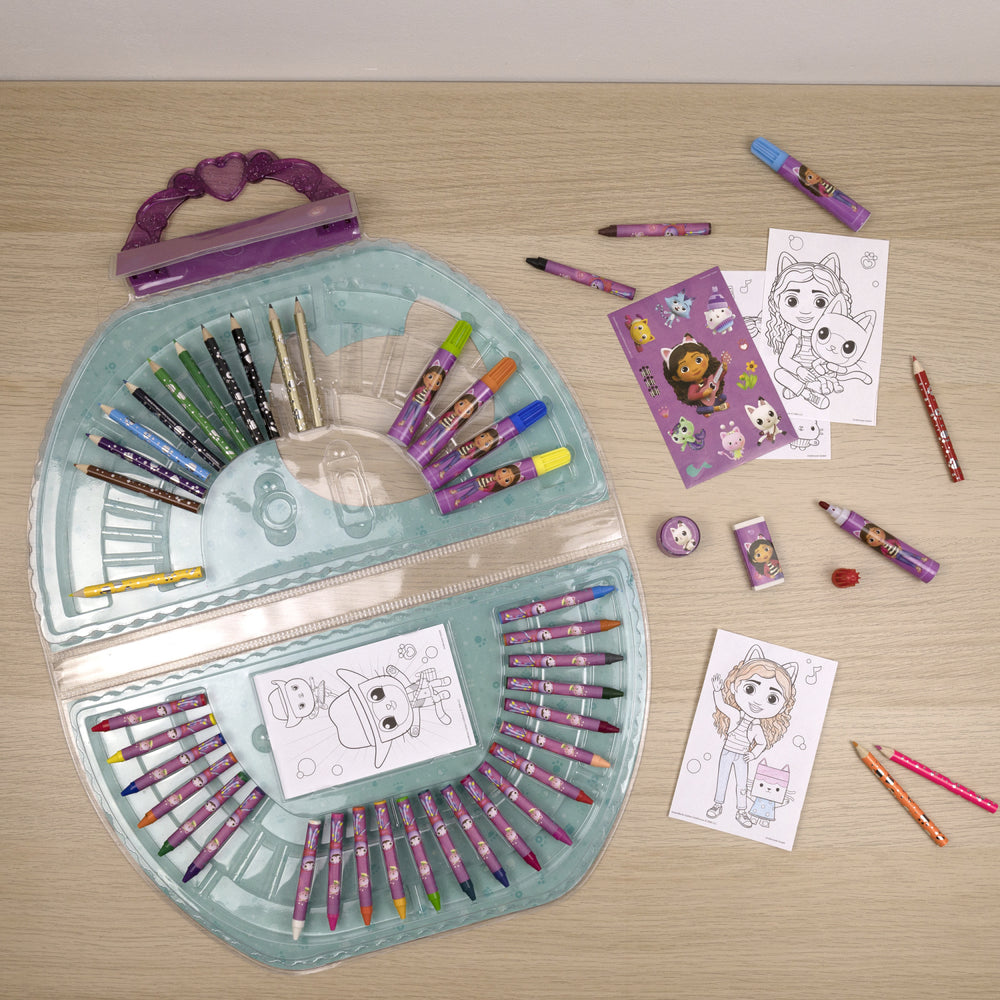 Upptäck barnets inre konstnär med Gabby's Dollhouse målningspåse från Undercover, perfekt för de små kreatörerna. Denna målningspåse är inte bara full av färgglada tillbehör, utan den är också designad med barns säkerhet i åtanke. Med 51 stycken inklusive giftfria kritor och marker, kan barn tryggt utforska sin kreativitet.