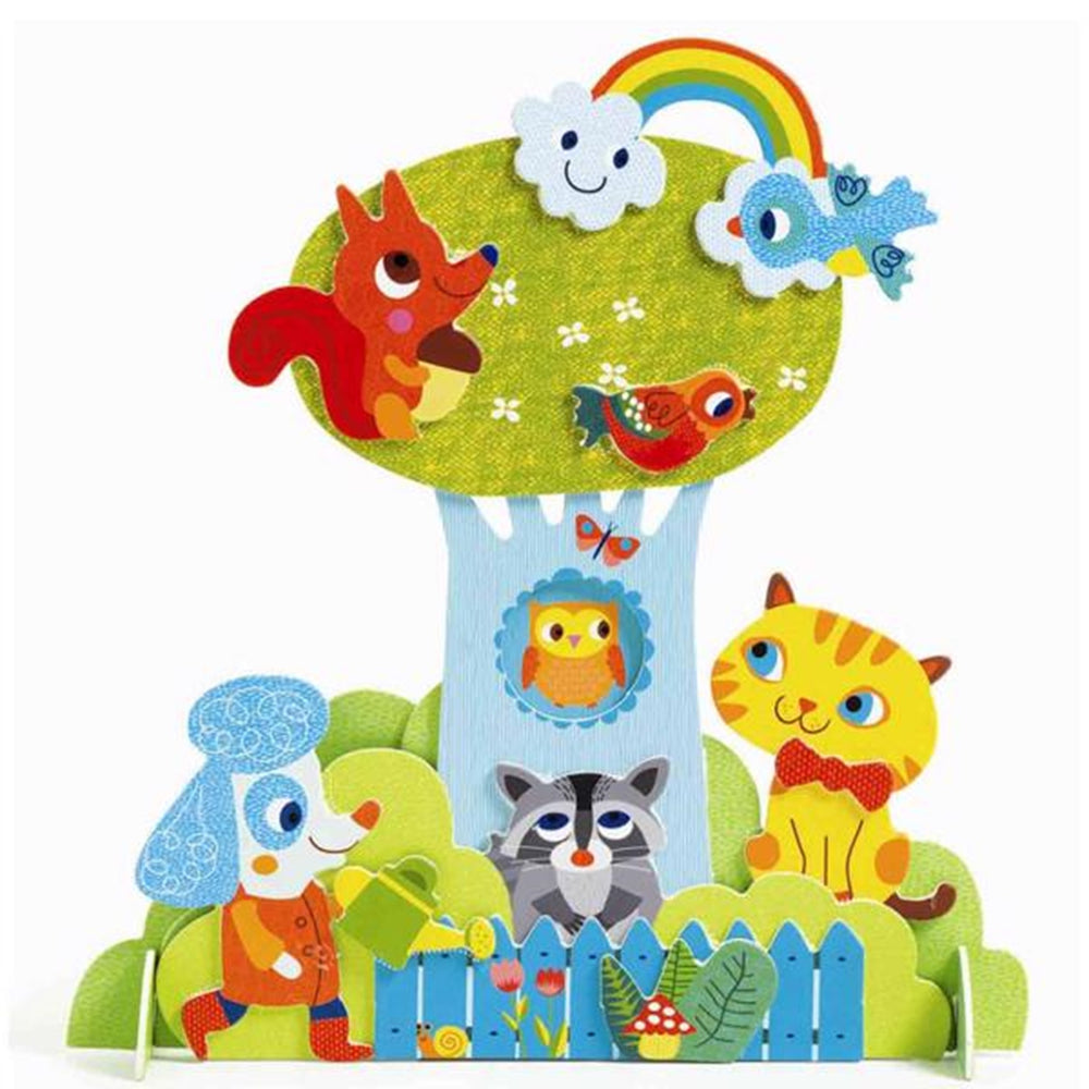 Här är den vackraste och mysigaste kreativa aktiviteten! Barnen måste bygga sitt alldeles egna träd. Allt som behövs för att skapa ett underbart och unikt träd ingår. Figurerna ska prickas ut och limmas fast på granen, precis som barnen tycker ser bäst ut. Bjuder in till härlig och mysig lek – även när trädet är färdigt.